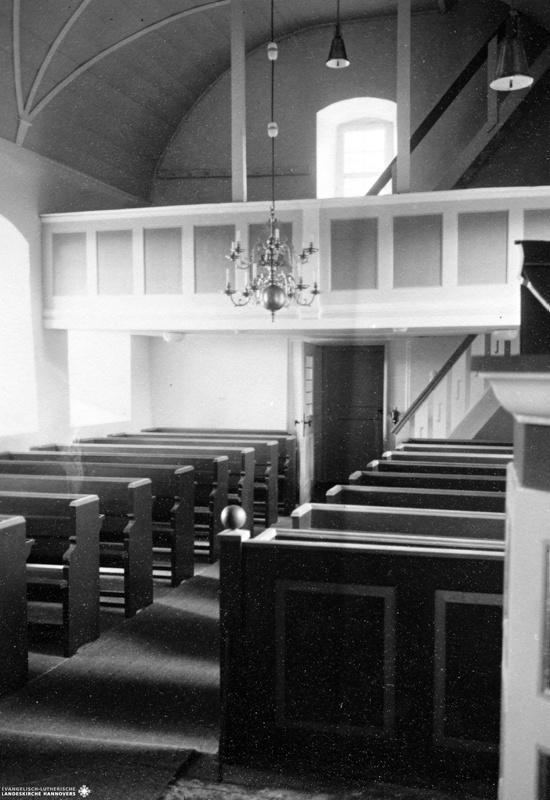 Segeste, Kirche, Innenansicht nach Westen, September 1958