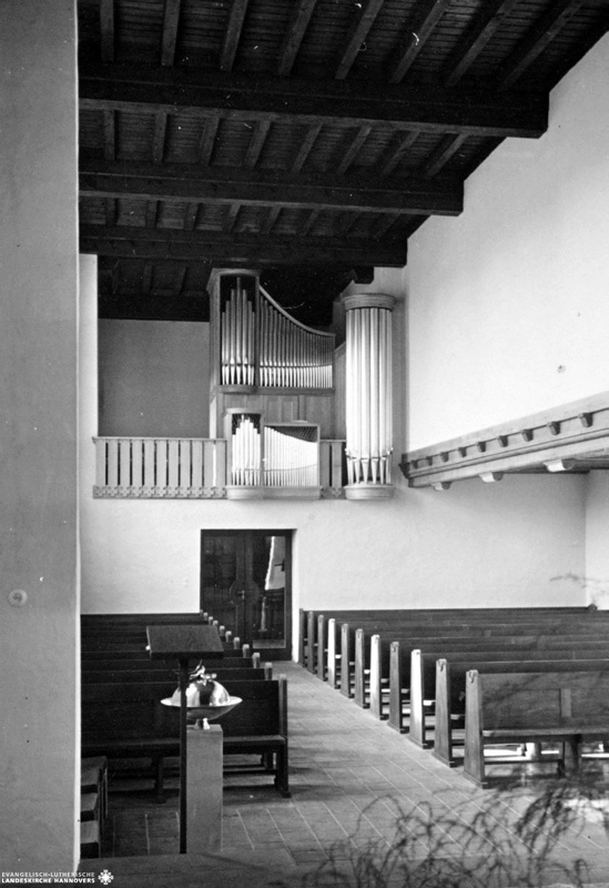 Wesendorf, Kirche, Orgelempore, September 1956