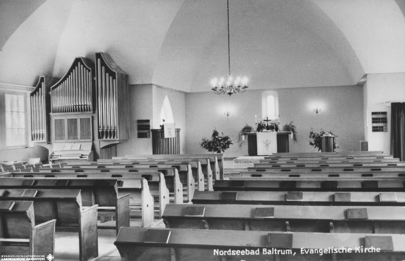 Baltrum, Große Inselkirche, Altarraum, um 1960