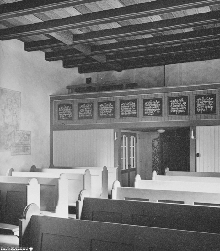 Trupe, Marien-Kirche (»Truper Kapelle«), Innenansicht nach Westen, August 1951