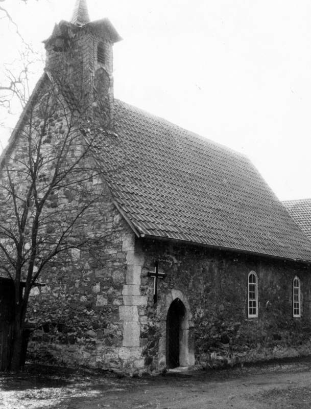 Südwestansicht; neben der Eingangstür ein Holzkreuz