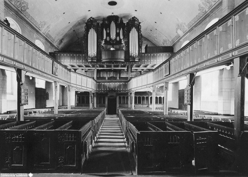 Scharmbeck, Willehadi-Kirche, Innenansicht nach Westen, o. D.